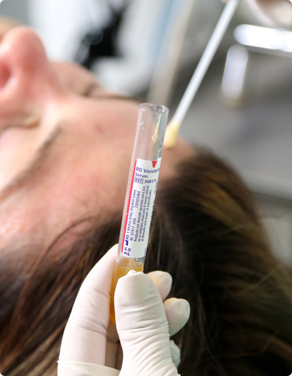 plaquetas liberan factores de crecimiento que se encargan de la producción de tejido nuevo, colágeno y elastina. Desvanece líneas de expresión, arrugas, cicatrices y marcas por acné.